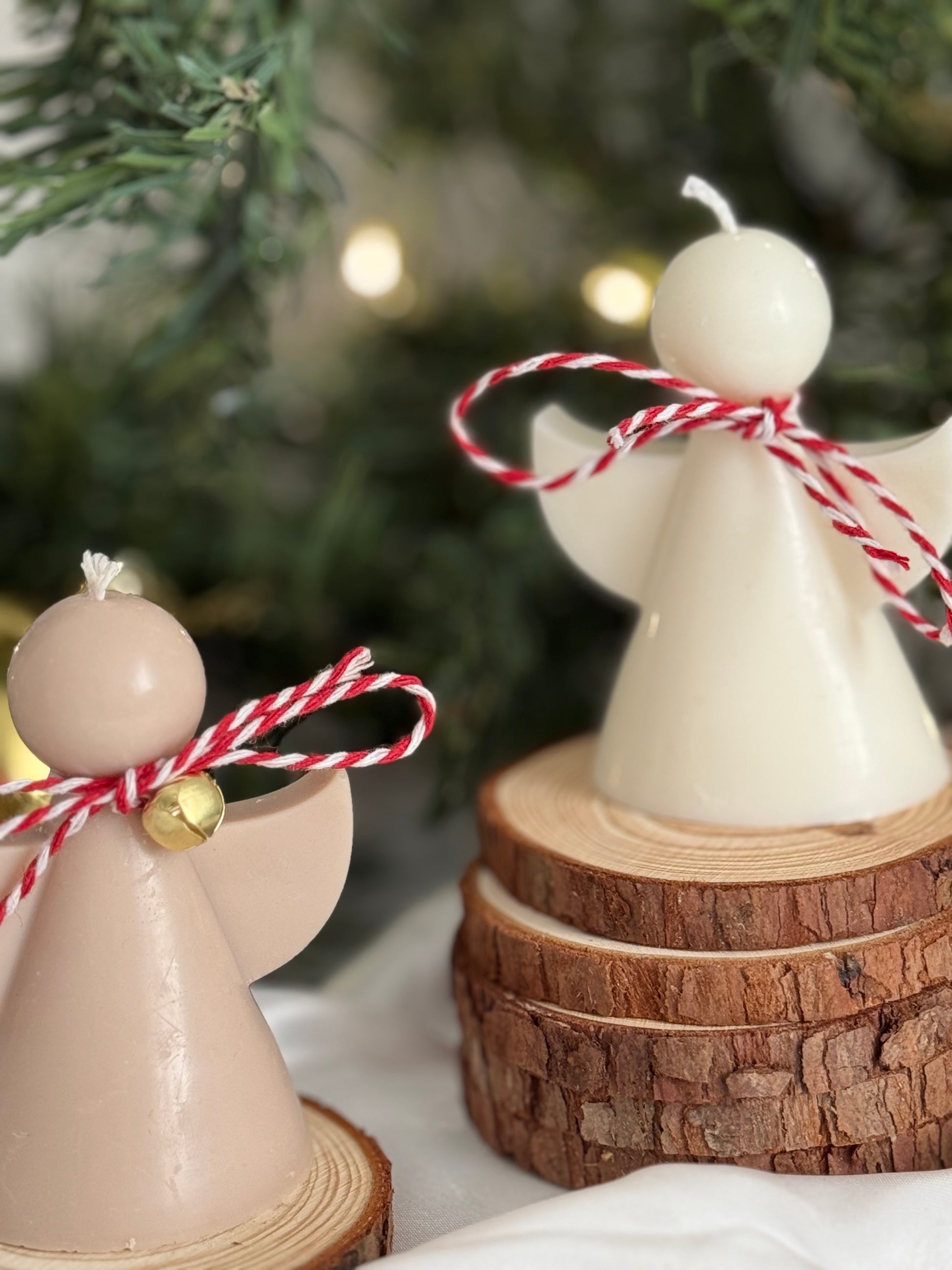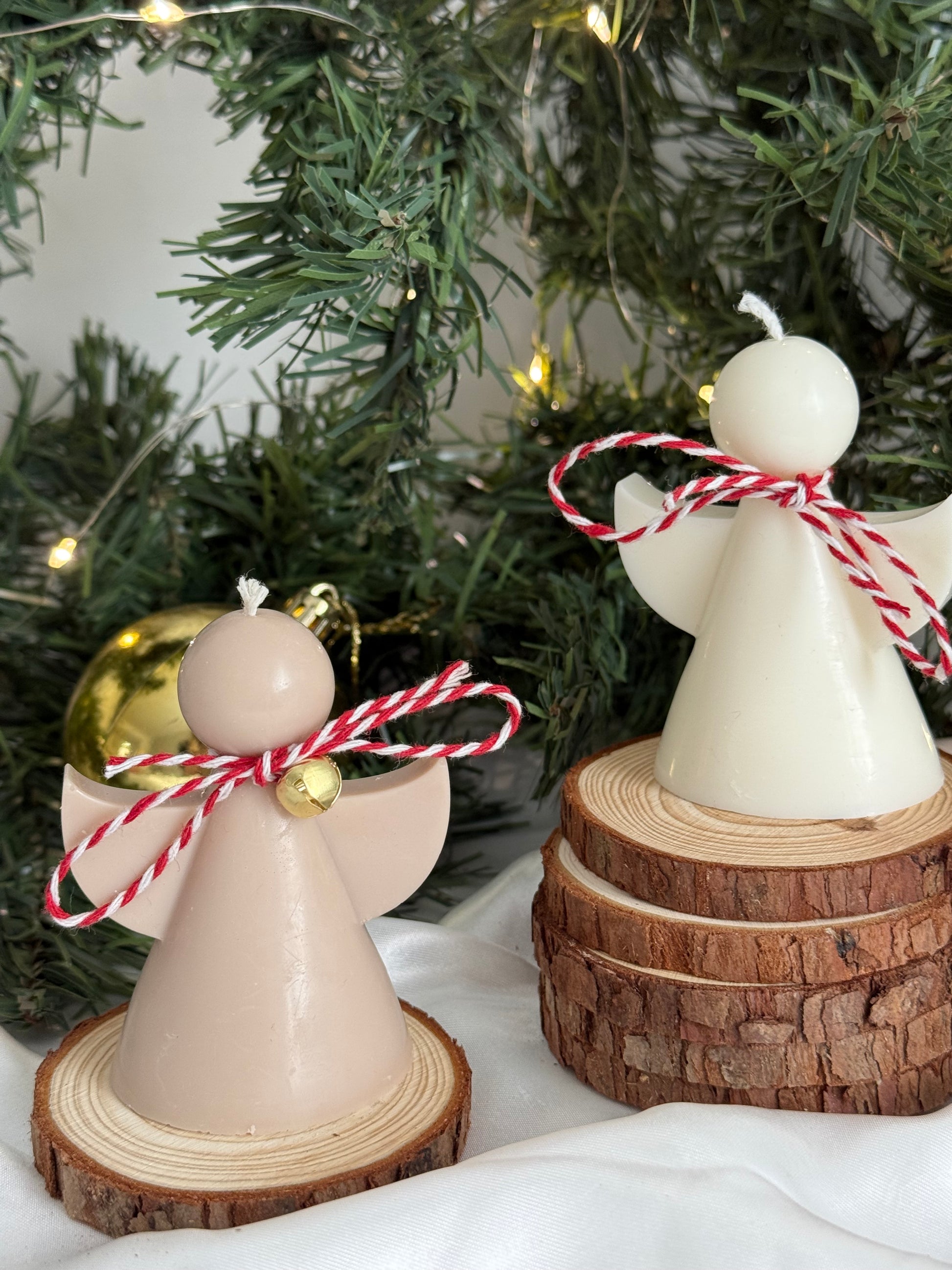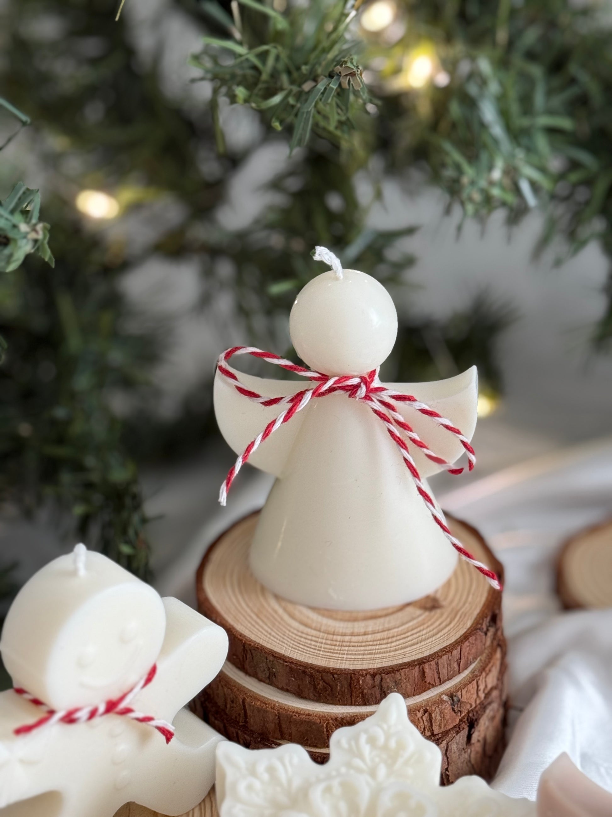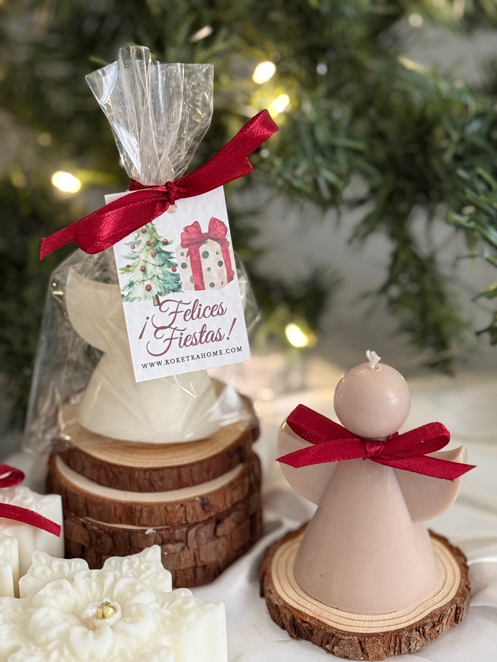 Déjate envolver por la magia de la Navidad con nuestra vela artesanal con forma de angelito.
