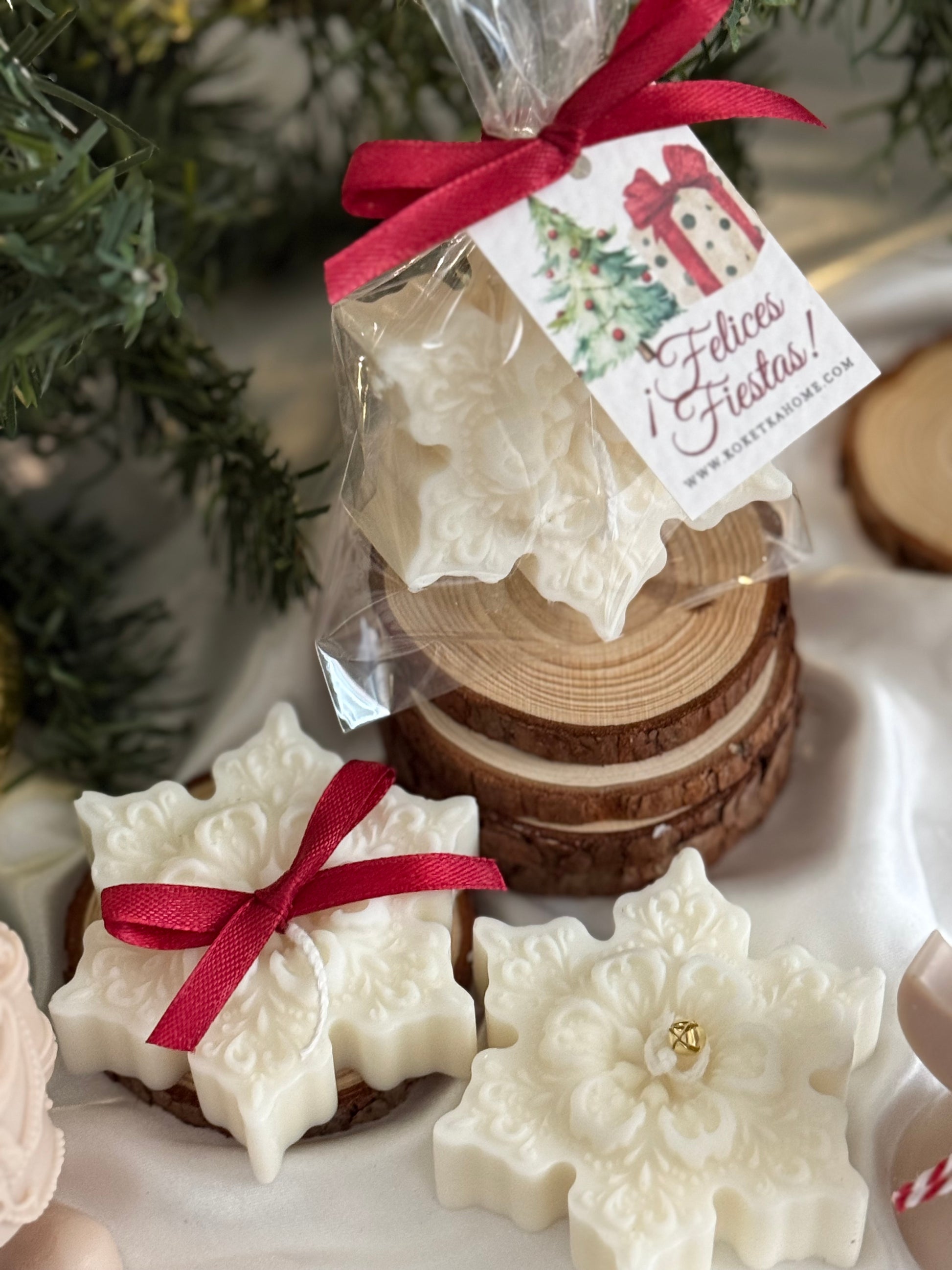 Déjate envolver por la magia de la Navidad con nuestra vela artesanal con forma de copo de nieve.