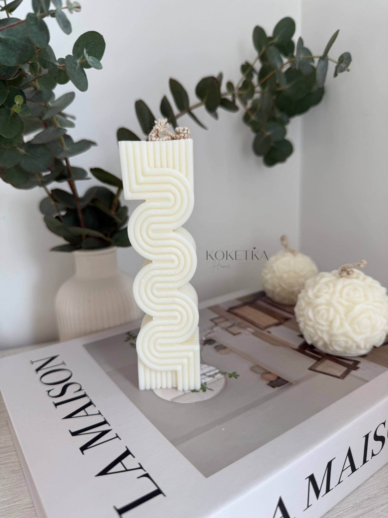La Vela Éter es una expresión de elegancia moderna y diseño vanguardista. Su estructura geométrica fluida y simétrica evoca ligereza y equilibrio, convirtiéndola en una pieza decorativa única que se adapta a cualquier ambiente contemporáneo.